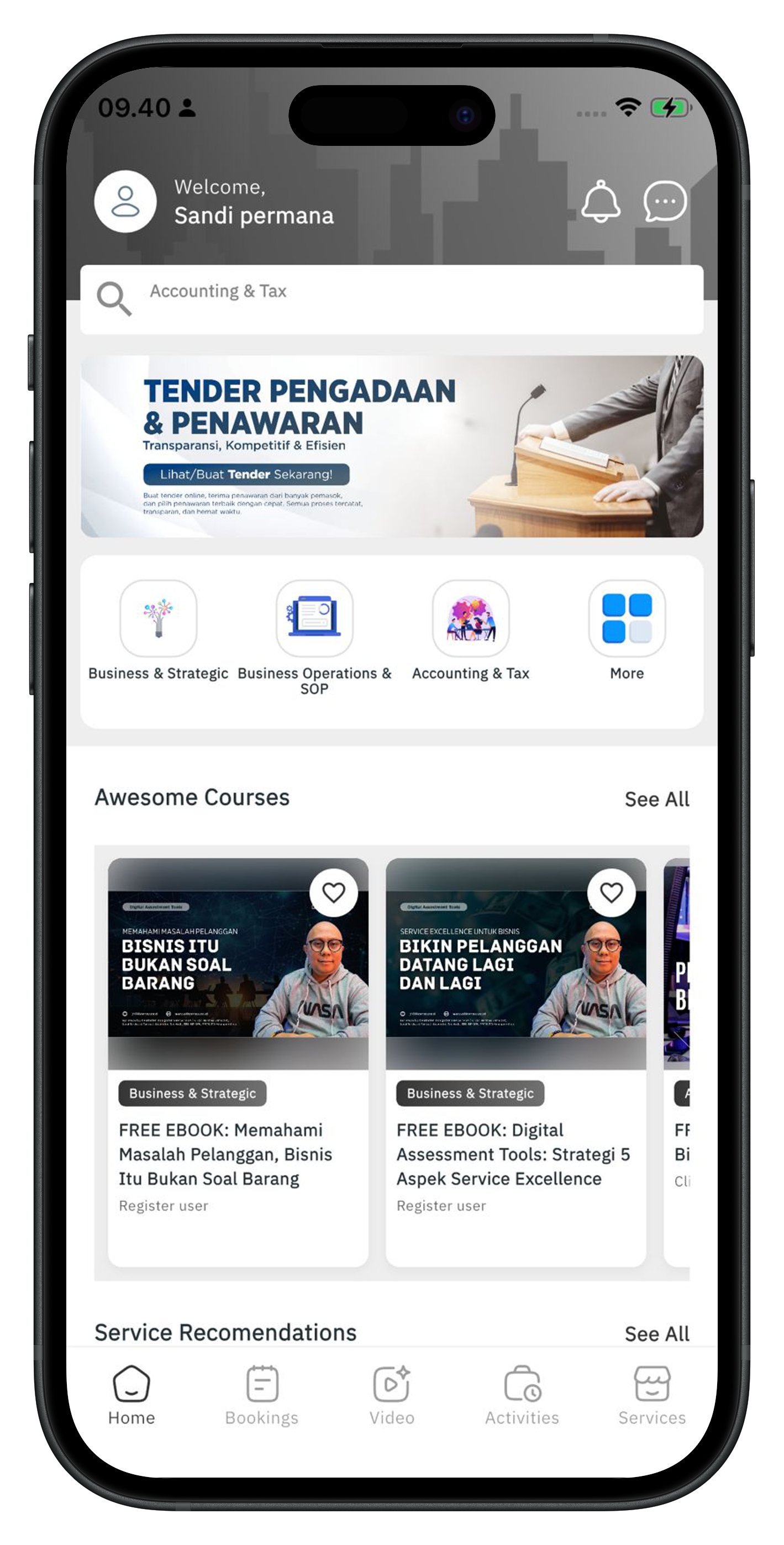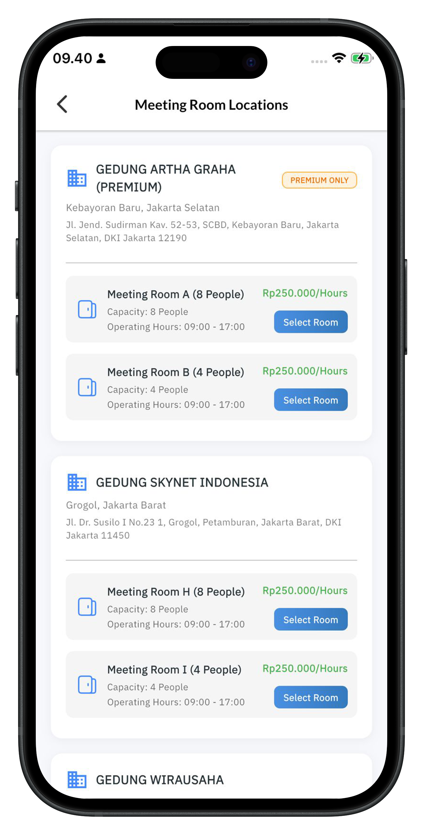 Atur kebutuhan bisnis Anda dengan lebih mudah melalui fitur booking Officenow. Mulai dari reservasi layanan Virtual Office hingga kebutuhan operasional bisnis, semua dapat dilakukan dengan praktis dalam satu aplikasi.